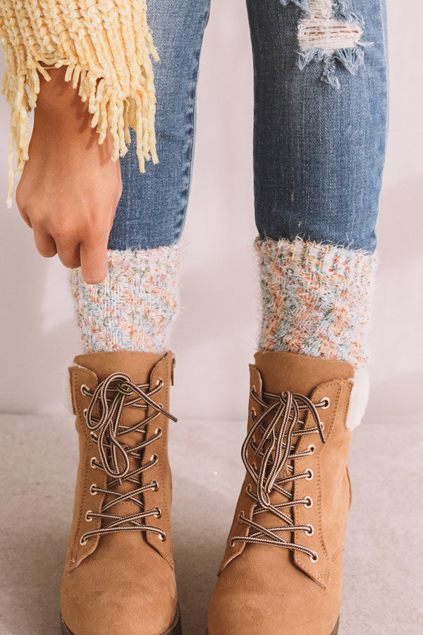 Your winter style will be taken to "new heights" when you accessorize with these adorable multi colored socks featuring soft lightweight tight knit material with fuzzy texturing and a form fitting silhouette!