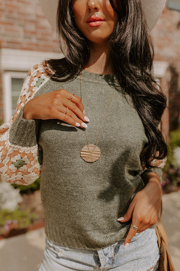 Our pretty 'New In Town Necklace' features a long dainty chain with a large circle textured pendant!