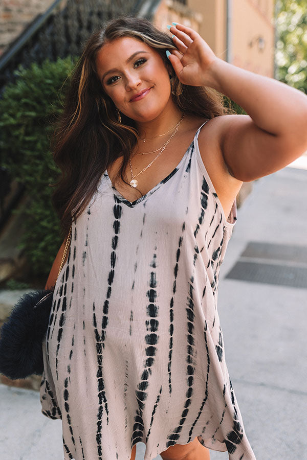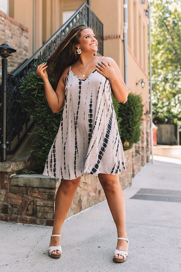 A casual cutie, our light birch hued plus size 'New Playlist' shift dress features soft lightweight material patterned with navy tie dye, a v-cut neckline and upper back with spaghetti straps, and a relaxed silhouette that falls into a straight mid-thigh length hemline!