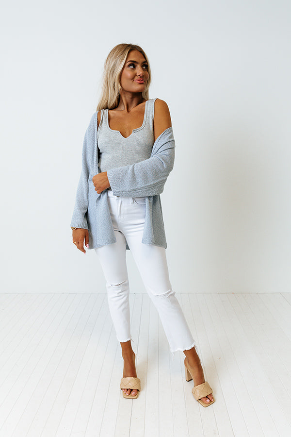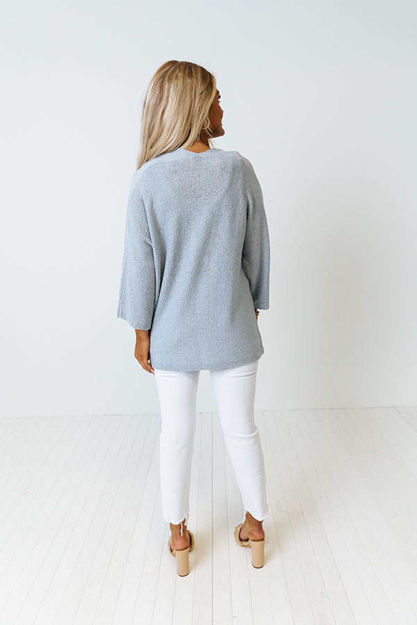 Layer up in style with our simple but significant sky blue colored 'New Timezone' cardigan featuring soft lightweight tight knit material, loose half sleeves, and a relaxed open front silhouette that falls into a straight tunic-length hemline!