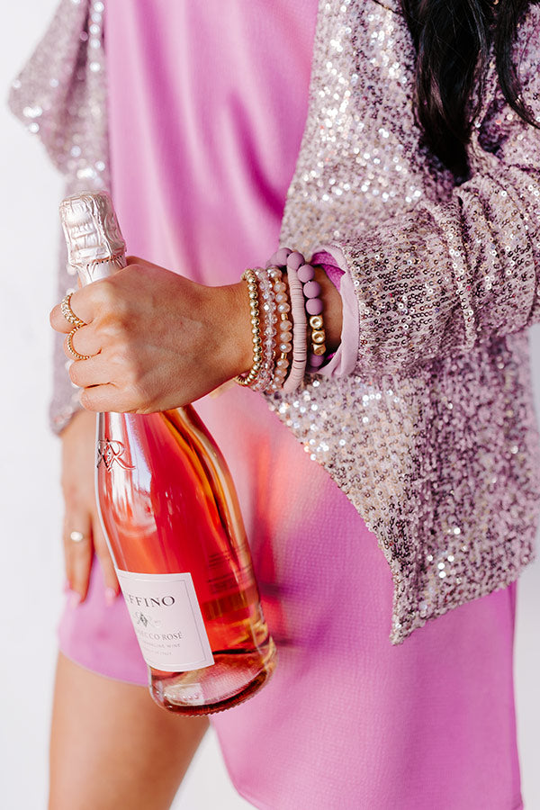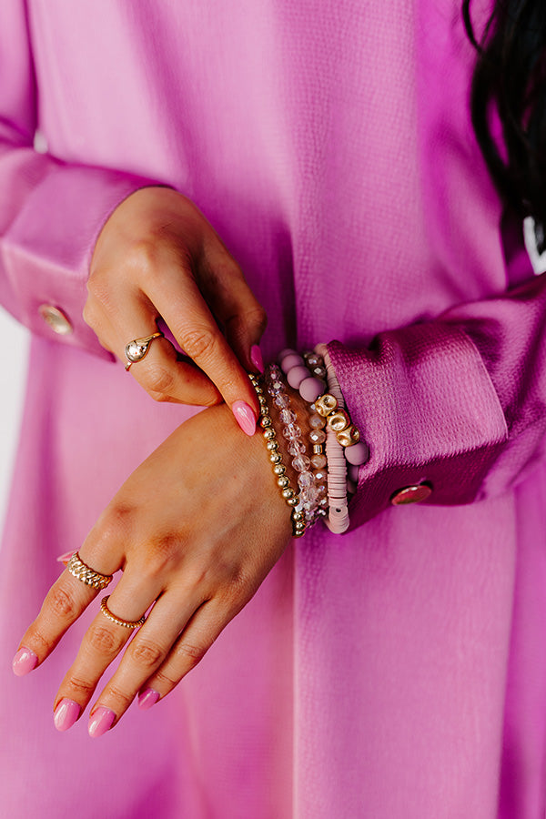 - Beautiful blush and gold toned beaded bracelets featuring trendy heishi beads as well and shimmering accents