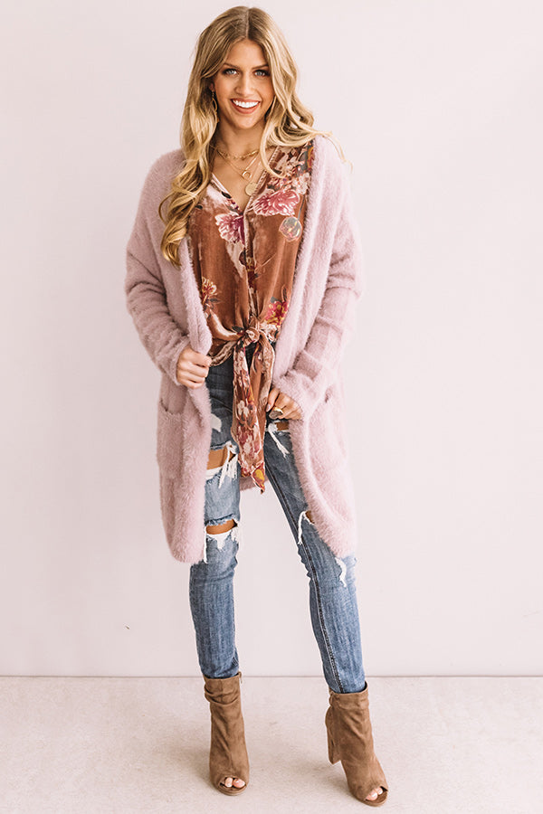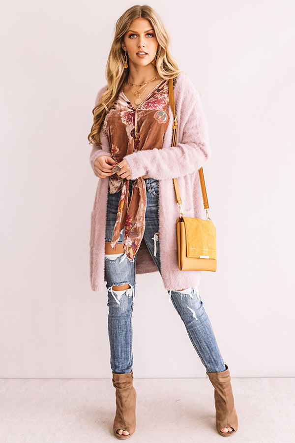 Welcome the chilly fall weather in style with the lavender colored "New Views" cardigan featuring ultra soft lightweight loose knit material, long loose sleeves with fitted cuffs, accent side pockets, and a relaxed open front bodice that falls into a straight mid-thigh length hemline! You can style this versatile piece with just about anything from a basic tank to a sweater, jeans to dresses, wedges to sandals, clutches to totes, and hats to earrings!