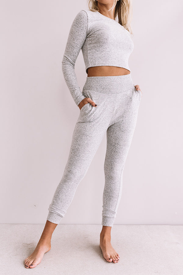 We have no doubt you will be OBSESSED with these grey colored joggers featuring soft and stretchy lightweight fuzzy material, a wide high waistband, accent side pockets, and a fitted silhouette that falls into ankle length fitted hems! For the ultimate two piece set, you can style this piece with our "Newly Obsessed Crop Top in Grey" and a leopard headband, or you can wear it with our "That Cozy Feeling Shift Sweater in White," our "Upstate Adventures Faux Leather Leopard Backpack in Brown," and "The Delaney Sneaker in Leopard!" Measurements