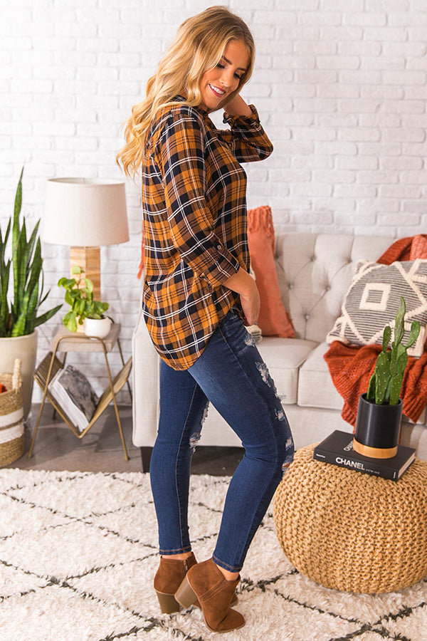 It's almost time for fall days and "harvest lattes," which means we're breaking out the plaid! Plaids are the ultimate fall layering essential, and this transitional piece will comfortably carry you into fall with its collared neckline, long roll-tab sleeves that can also be worn down, rounded hemline, and a lightweight button-down bodice! You will have this mustard classic on repeat all season long, especially when you style it with distressed skinnies and a neutral bootie, or under a warm jacket with a beanie! Measurements