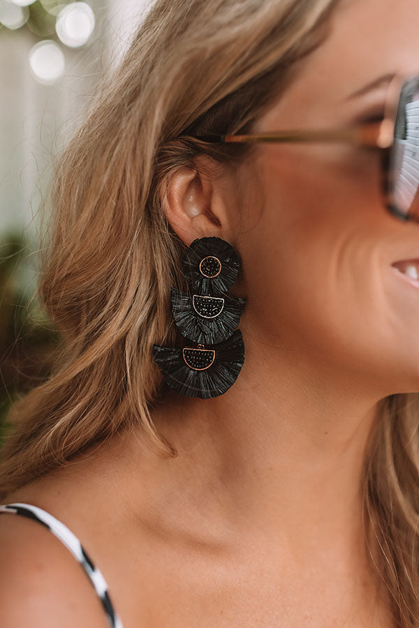 Slay all day by accessorizing with our stunning black "Paris Lights" statement earrings featuring beaded circle studs and dangling half circle centers surrounded by paper fringe!