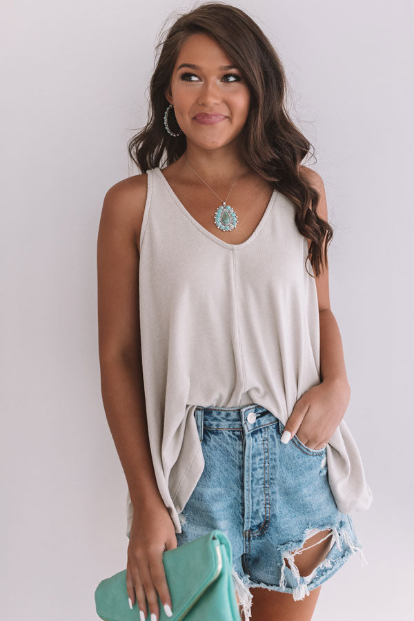 Relax, and go with the flow in this effortlessly stylish tank top! The "Pinot and Paparazzi Shift Tank has a rounded v-cut neckline, a sleeveless ribbed shift bodice, and a gorgeous scooped back. Whether you wear this tank solo, or layer it under a jacket or cardigan, you will never run out of reasons to wear this must-have closet essential! We recommend pairing with a bralette for the ultimate layered look. Measurements