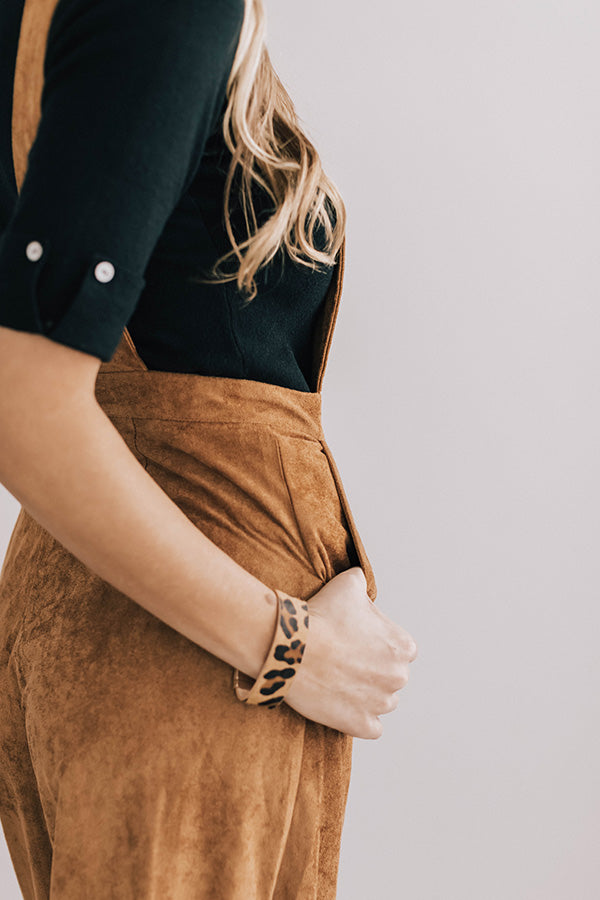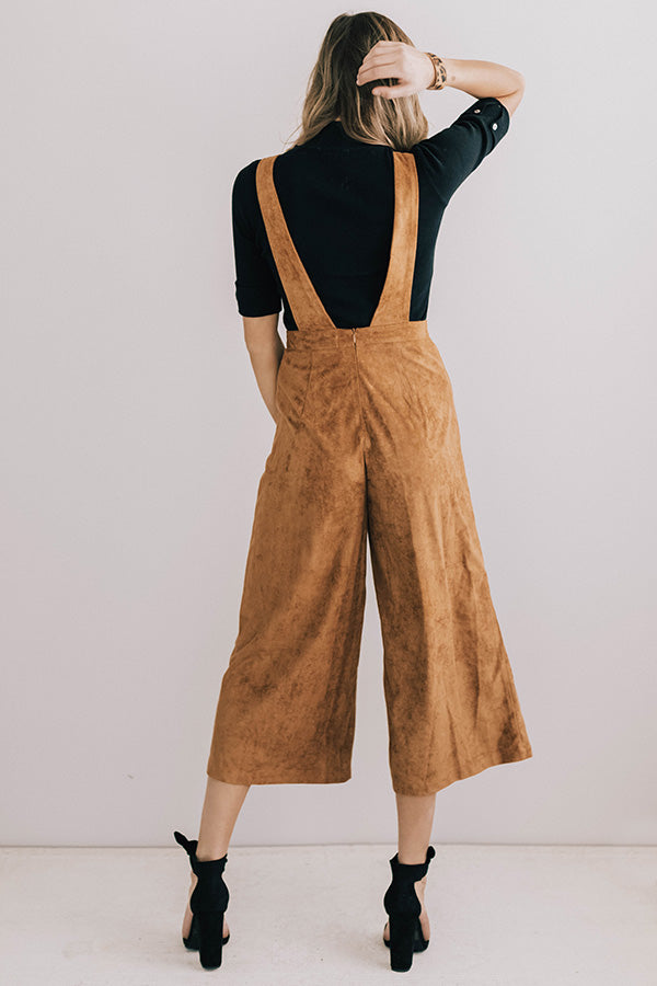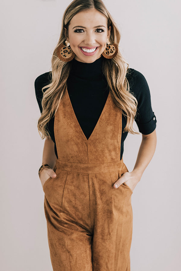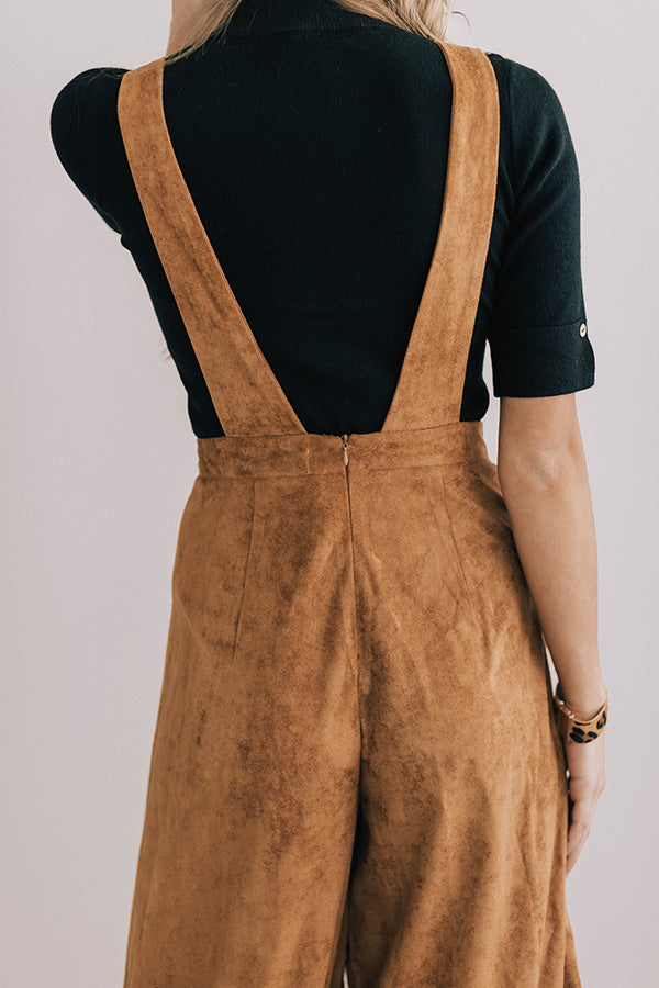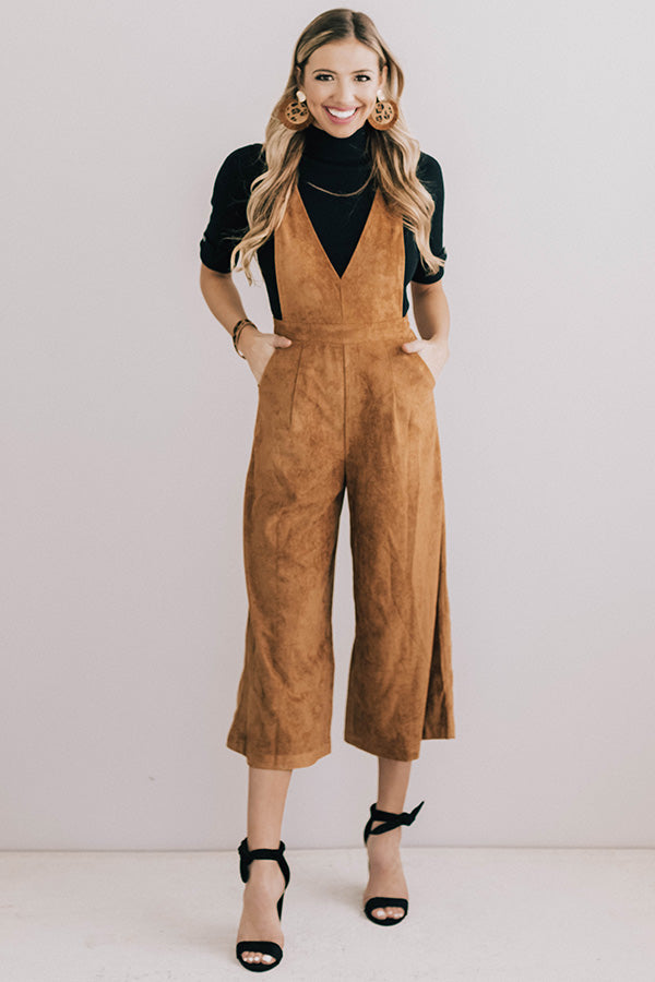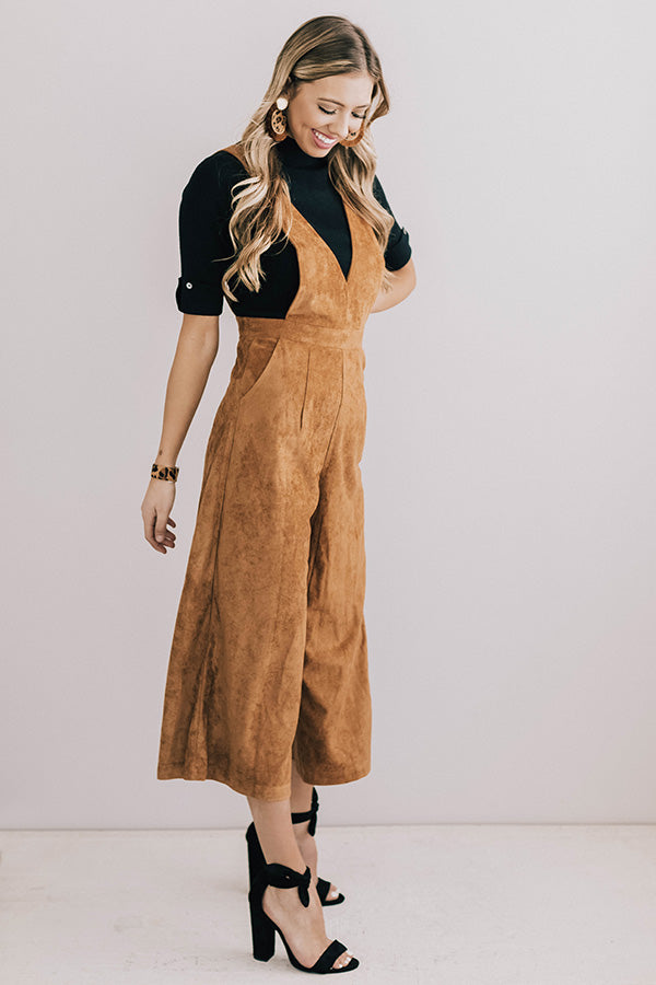 Autumn Getaway Faux Suede Jumpsuit in Camel