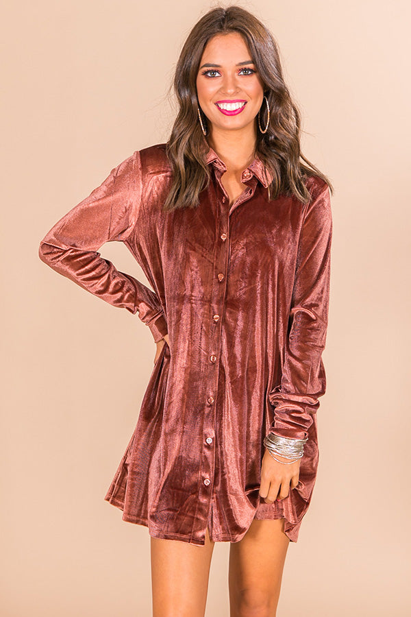 Happy hour is the best hour! Show up looking & feeling your best in the "Happy Hour Honey Velvet Tunic Dress." This long sleeve velvet tunic dress has a collared neckline & a relaxed button-down shift silhouette (with hidden side pockets.) Style this dress with a sassy lace-up heel for date night, or pair it with a great pair of over-the-knee boots for a more casual happy hour look... Your style options are endless with this velvet tunic dress!