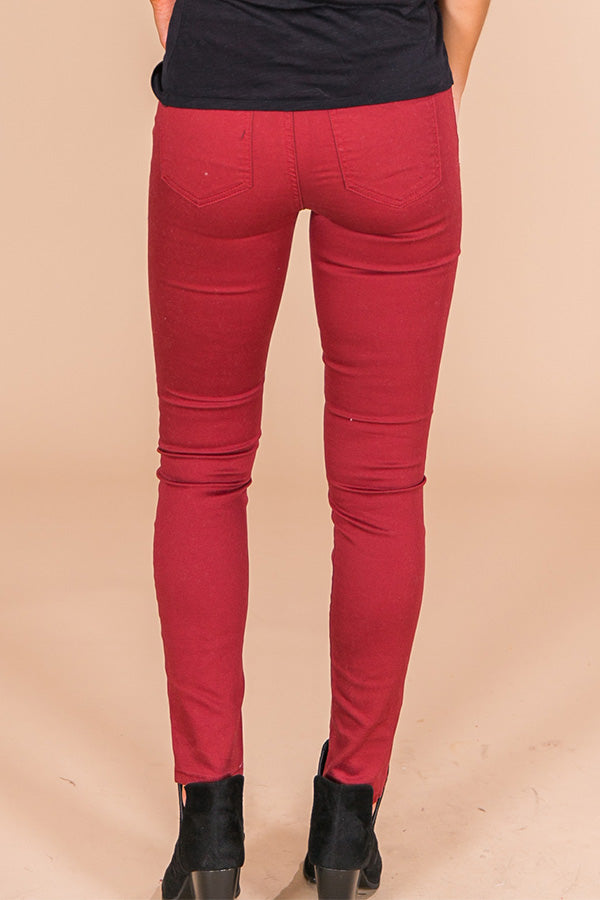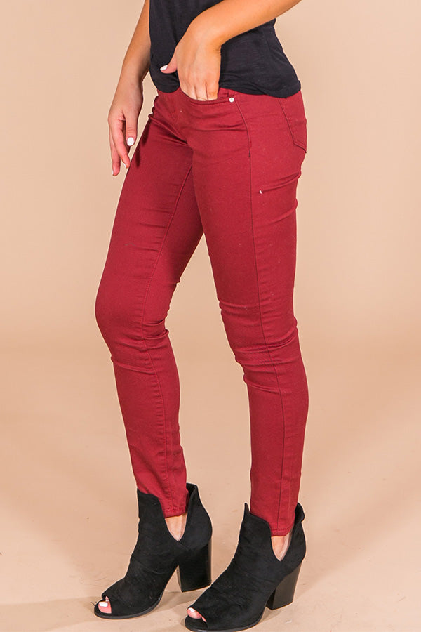 The "Cait Mid Rise Skinny" jeans have a mid-rise, skinny, and stretchy fit with an ankle length hem.