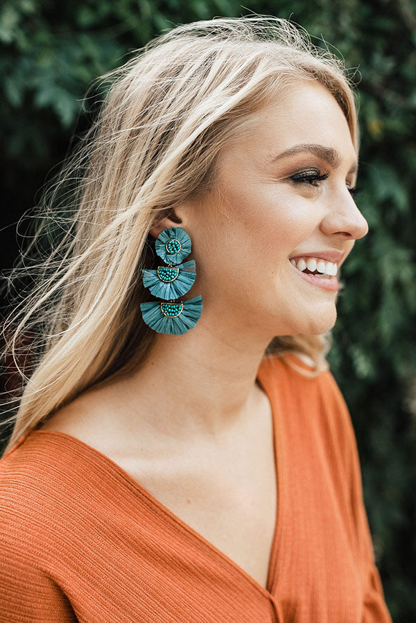 Slay all day by accessorizing with our stunning teal colored "Paris Lights" statement earrings featuring beaded circle studs and dangling half circle centers surrounded by paper fringe!