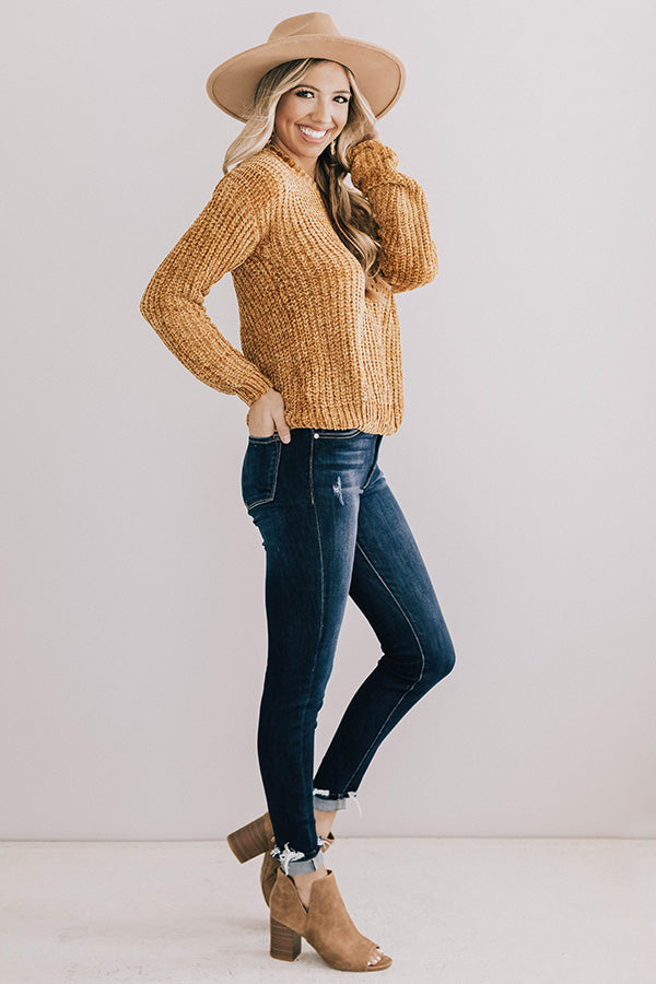 Pour a cup of coffee & cuddle up in the coziest sweater of the season! The "Coffee Cuddles Chenille Sweater" has a v-cut neckline, long sleeves & a plush chenille knit bodice with a waist length hem. The only thing missing from this cozy look is a fun girlfriend & a game plan!