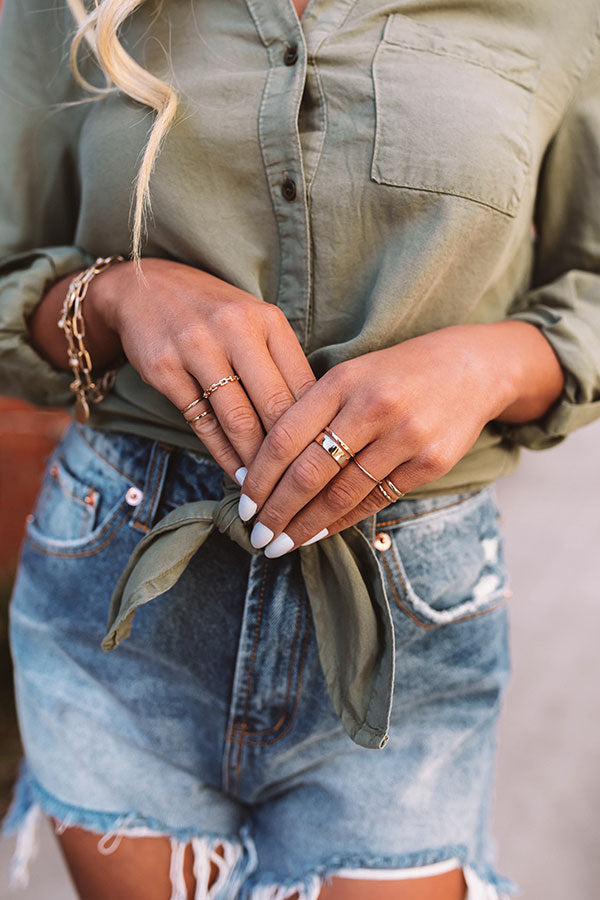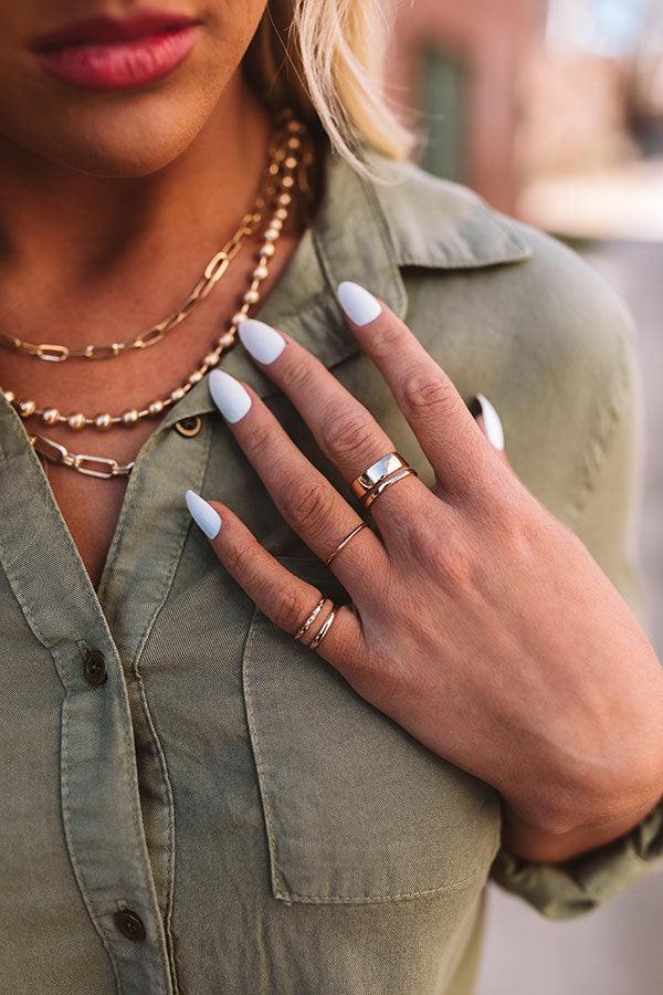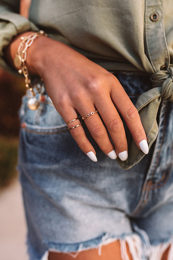 Next up on our list of faves is this darling ring set featuring seven unique skinny, wide, and link bands, perfect for stacking!