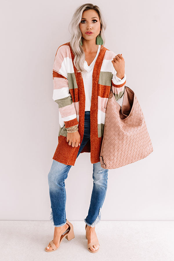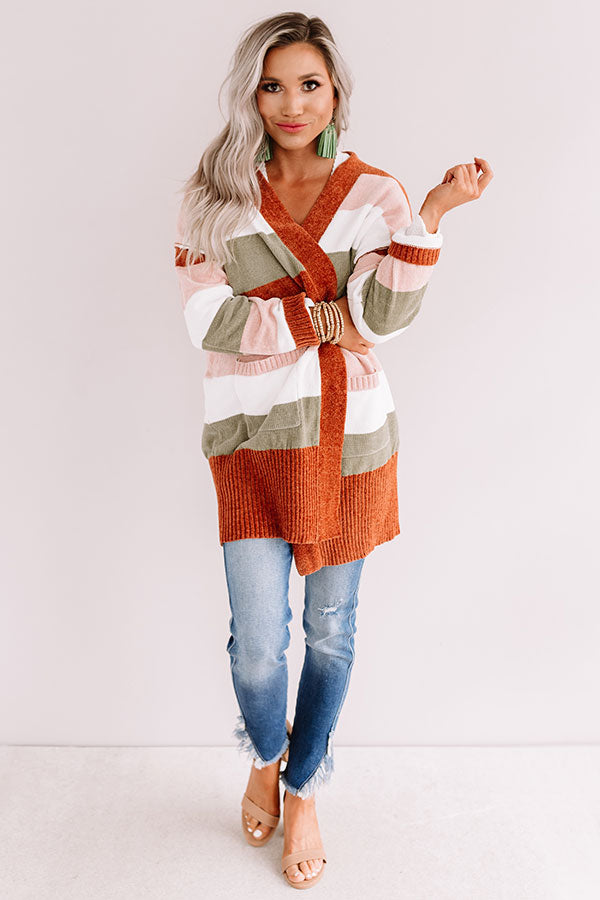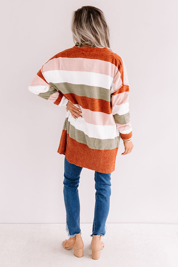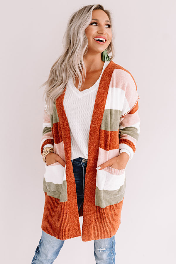 Our adorable "Nice To Meet Ya" cardigan is a key piece your closet has been craving with its soft lightweight tight knit material, ribbed trim detailing, vibrant horizontal color block stripes, long loose sleeves with fitted cuffs, low accent side pockets, and a relaxed open front silhouette that falls into a straight mid-thigh length hemline!