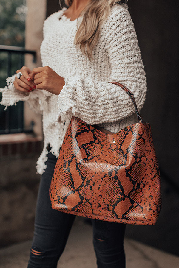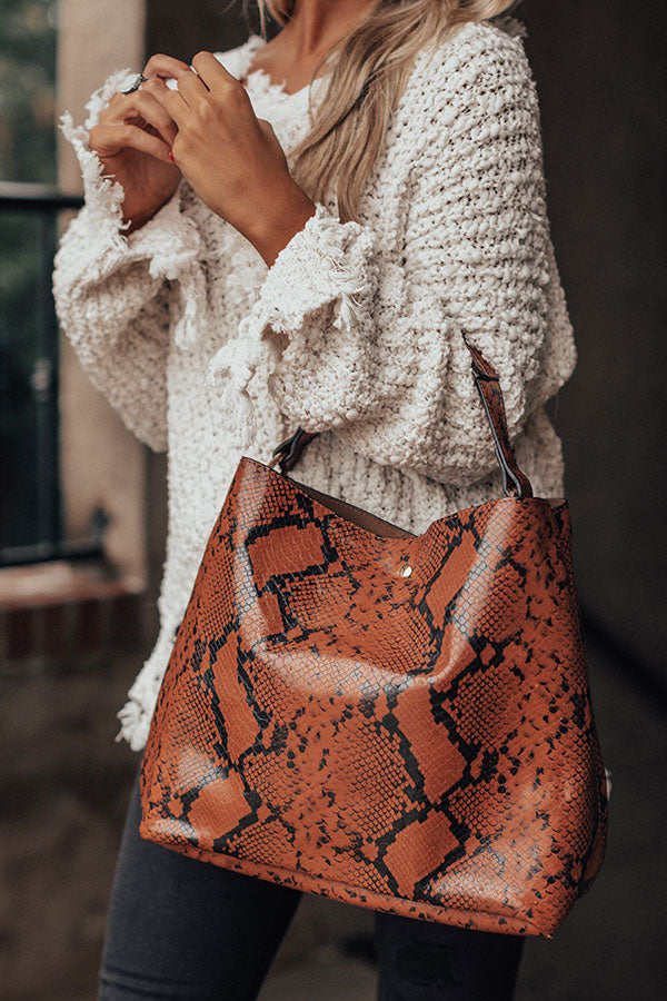 Nightlife Luxury Snake Print Tote In Cinnamon