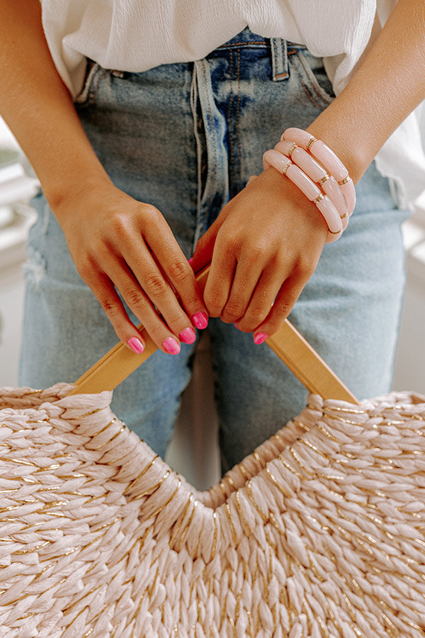 Keep your jewelry look simple but stylish in our pretty 'Nights By The Sea Bracelet' featuring a pink and gold resin stretch band!