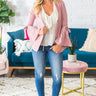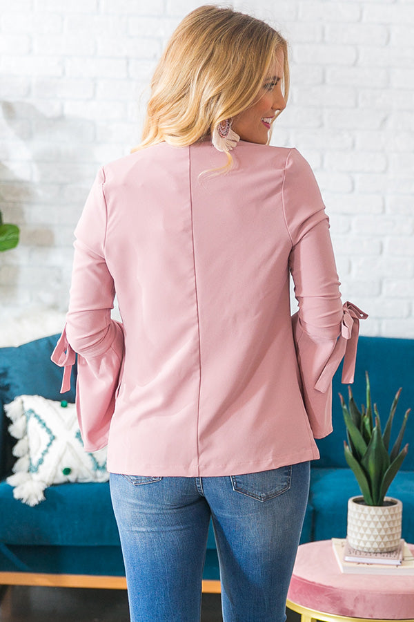 Look chic from nine to wine in this blush beauty! This sophisticated blazer has a classic open-front blazer silhouette with side pockets & ultra feminine bell sleeves that tie in a bow above the cuff. Whether you rock this blazer at your next meeting, or at your next happy... It's sure to be an instant success!