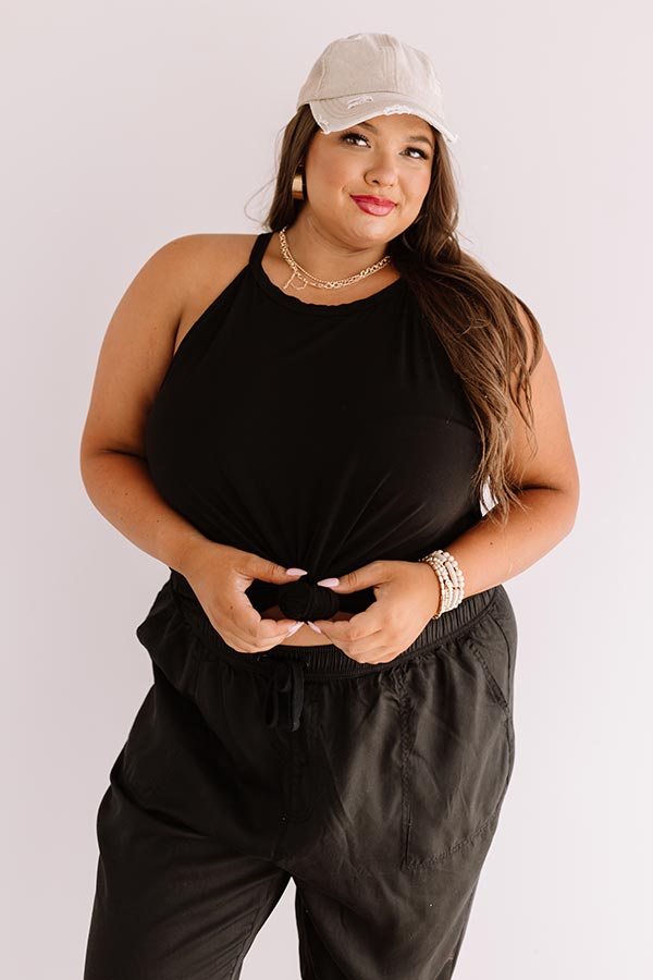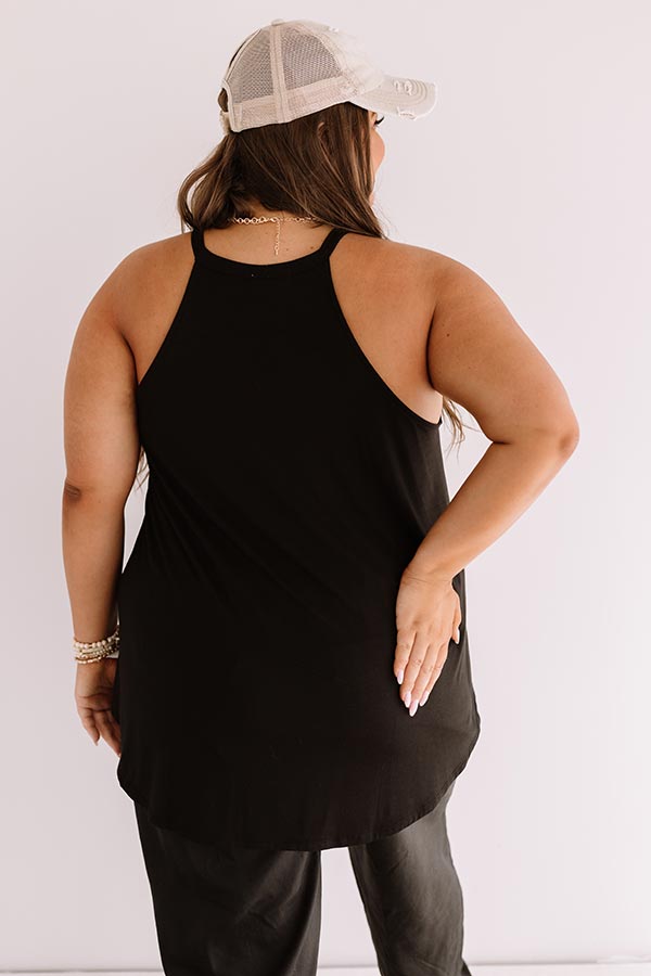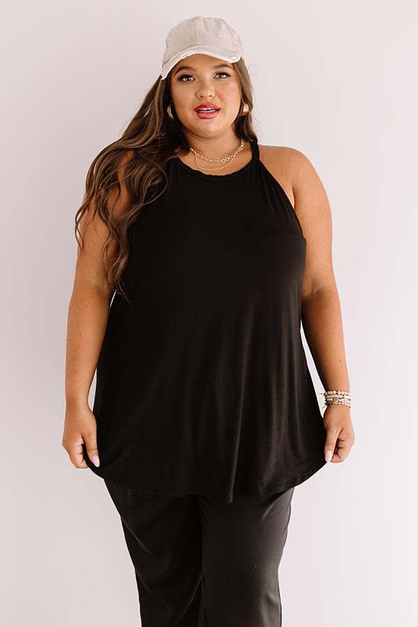Plus Size - Other basic tanks don't compare to this adorable black one featuring soft lightweight shift material, a high rounded neckline, thin sleeveless shoulder straps with a racerback fit, and an ultra relaxed silhouette that falls into a rounded tunic length hemline! Measurements