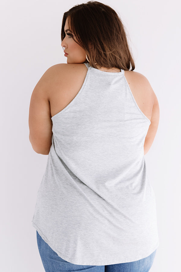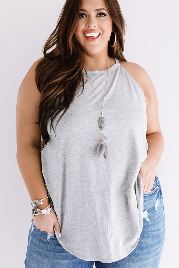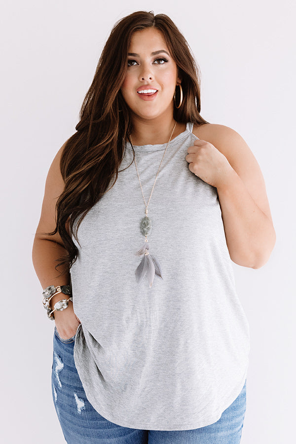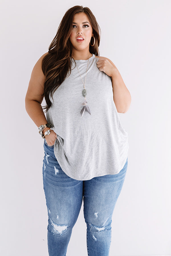 Plus Size - Other basic tanks don't compare to this adorable grey one featuring soft lightweight shift material, a high rounded neckline, thin sleeveless shoulder straps with a racerback fit, and an ultra relaxed silhouette that falls into a rounded tunic length hemline! The neutrality of this piece allows for endless styling options, like solo with some frayed ankle skinnies, snake print wedges, and a white bucket bag, but you can also wear it layered under a denim jacket with some distressed white shorts, sunnies, and "The Saylie Peep Toe Heel in Grey!" Measurements