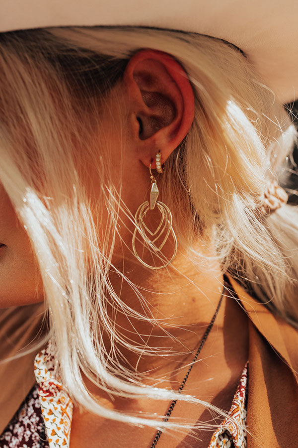 Upgrade your accessory collection with our 'No Hesitation' earrings featuring layers of gold dangling teardrops with a hammered texture.