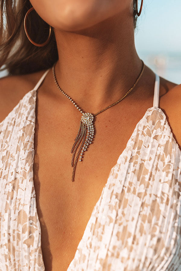 This piece will have your neck dripping in glitz with its diamonds and gold chains! Style it with your best evening gown or wear it to dress up your favorite band tee!