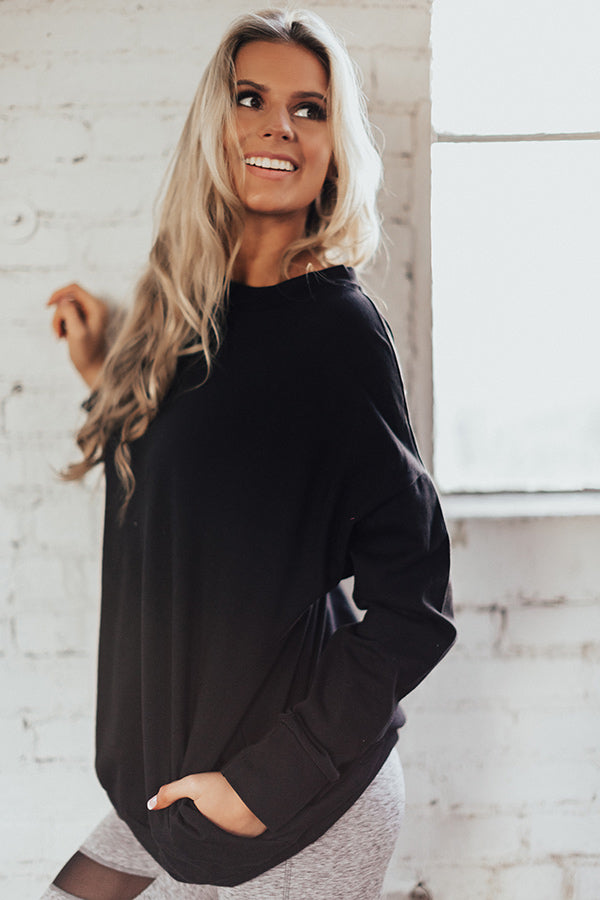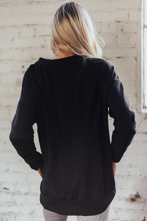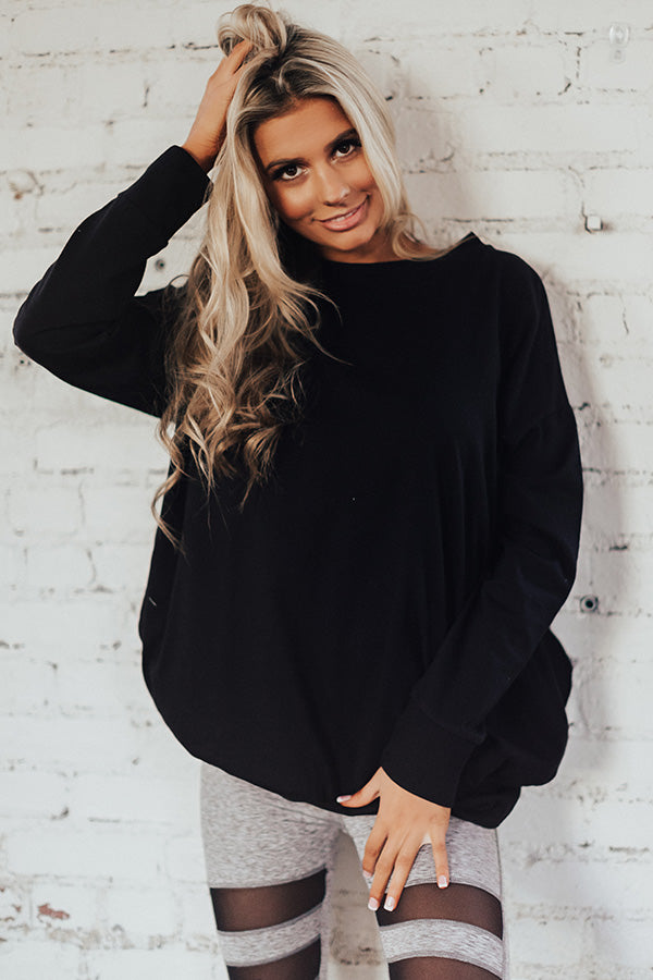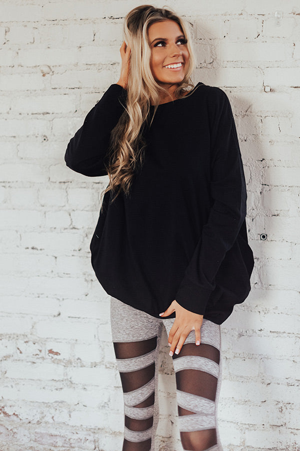 Our black "No Place Like Home Tunic Sweatshirt" features soft lightweight material, a high rounded neckline, long loose sleeves with fitted cuffs, low accent side pockets, wide trim, and an ultra relaxed silhouette that falls into a straight upper-thigh length hemline! You can dress this vibrant piece down by wearing it with some grey athleisure leggings and trendy sneakers, but you can also style it up by pairing it with some distressed light wash ankle skinnies, "The Calum Bootie in Blush," a faux leather backpack, and our "All Caught Up Headband in Blush!" Measurements