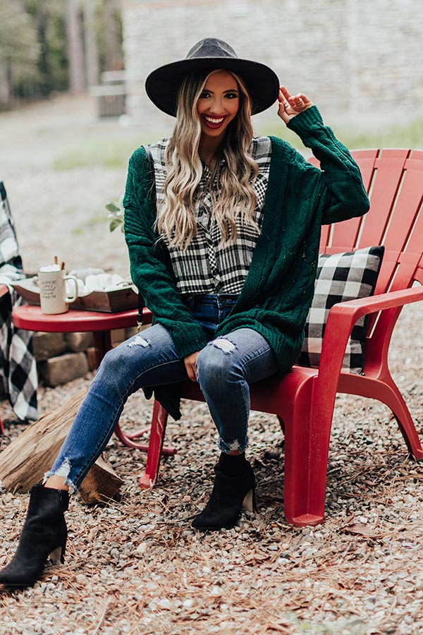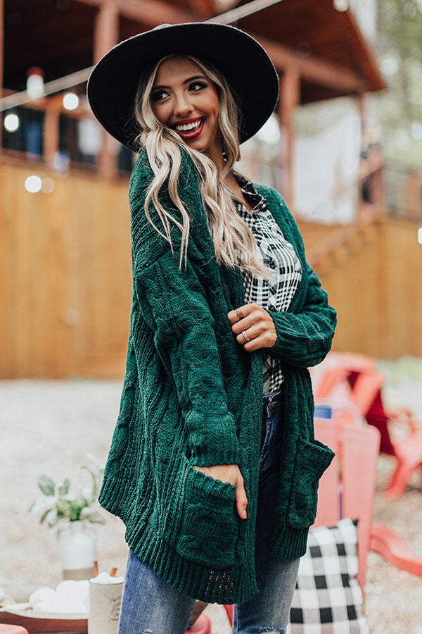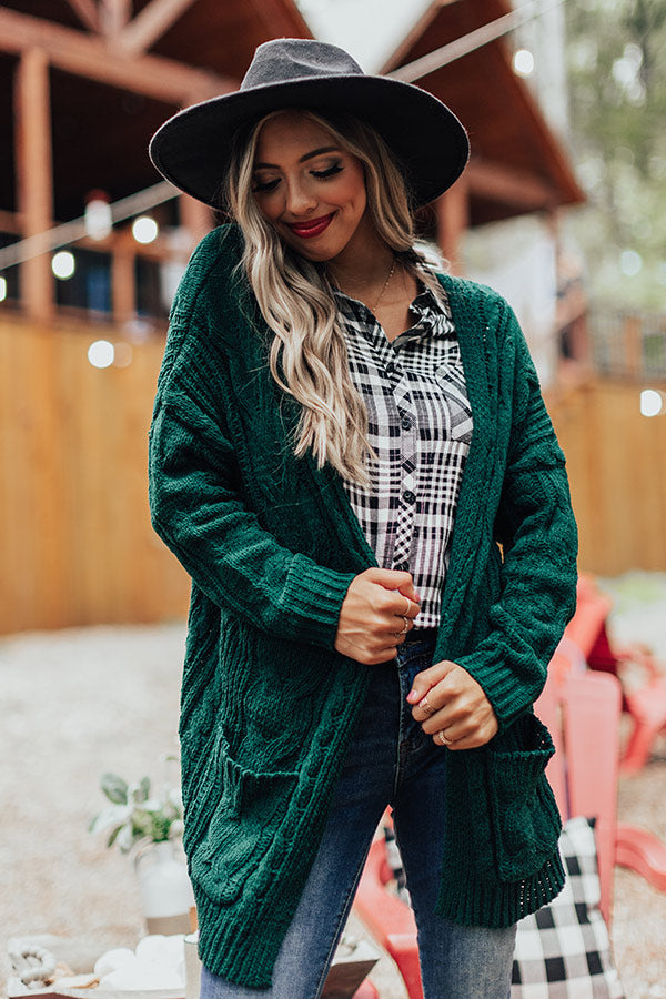 Nothing But The Best Cable Knit Cardigan In Hunter Green