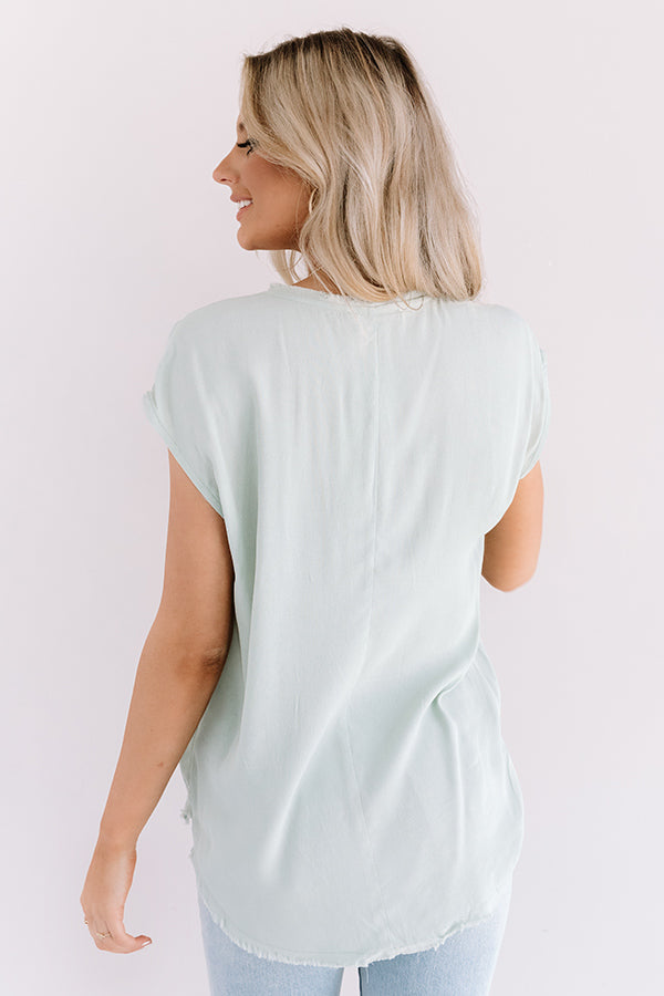 Your options are endless with our casual cute mint colored "NYC Influencer Shift Top" featuring sleek lightweight material, a scooped neckline with cap sleeves, frayed edge detailing, and a relaxed silhouette that falls into a rounded hemline! You can style this chic piece a variety of ways, like with some distressed ankle skinnies, a woven statement belt, and a neutral mule heel and faux leather tote, but you can also wear it with some frayed white shorts, "The Amalfi Bound Sandal," and our "Brighton Beach Babe Hat!" Measurements
