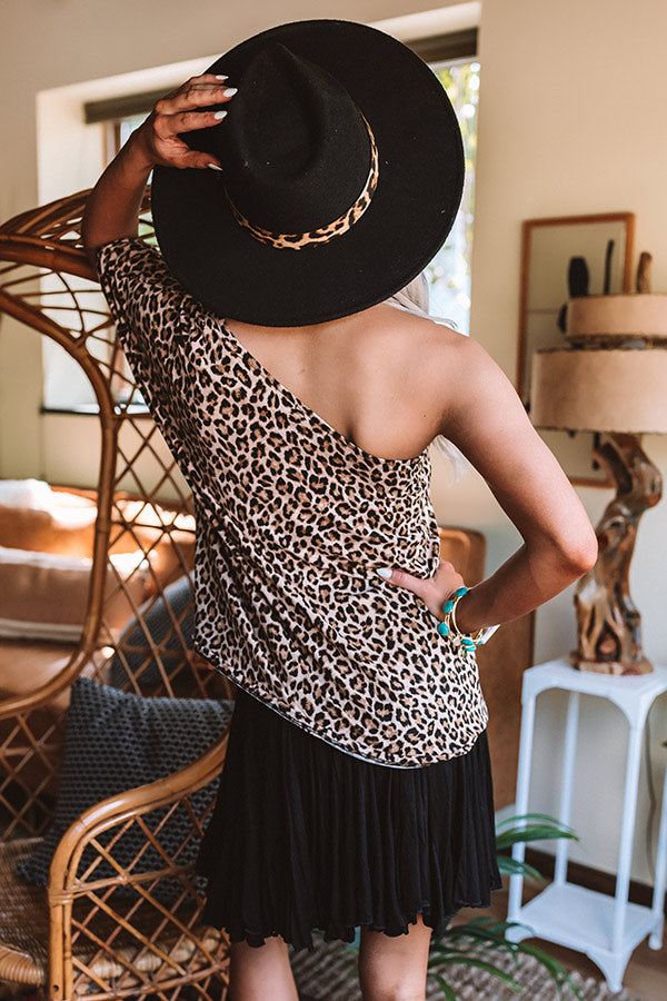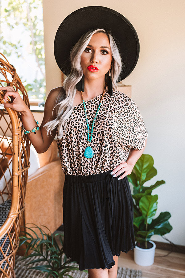 Up your street style game with our adorable "NYC Loft" top featuring lightweight material patterned with a bold brown and black leopard print, a diagonal neckline with single short loose sleeves, and an ultra relaxed silhouette that falls into an rounded hemline! We have styled this cutie with a black skirt, turquoise statement jewelry, a brown clutch, and a black wedge and faux suede hat, but you can also wear it with some distressed ankle skinnies and "The Jess Faux Leather Heel in Black!" Measurements