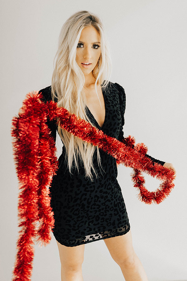 Fresh, fierce, and fabulous! The world is not ready for this dress but we know you are! Make a simple statement at your next event! The fitted cut, deep v neck, and open back will have peoples' jaws hitting the floor! Features a full shoulder and velvet leopard pattern.