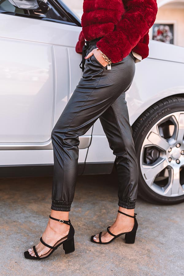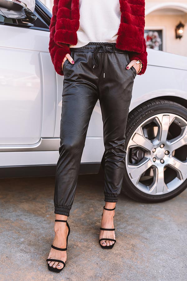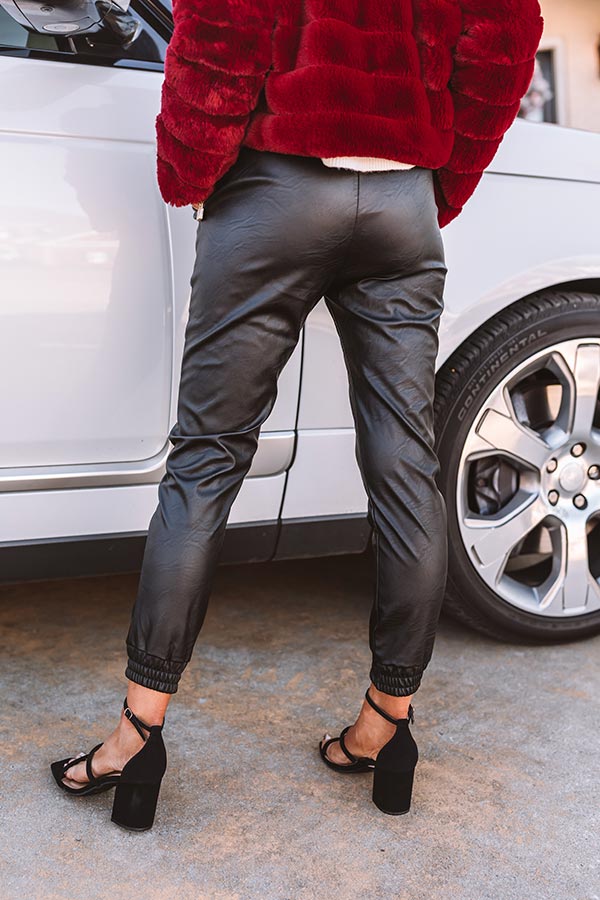 NYC Wardrobe Faux Leather Joggers in Black