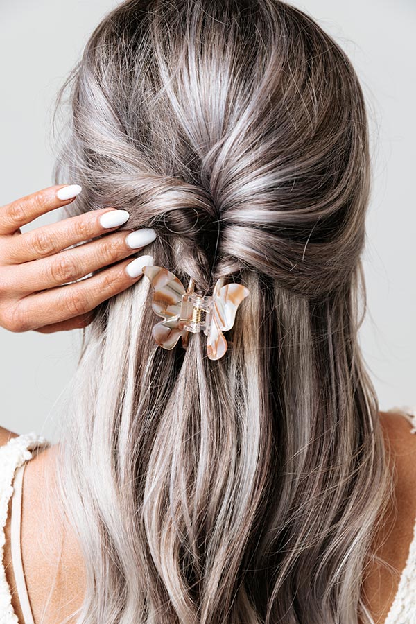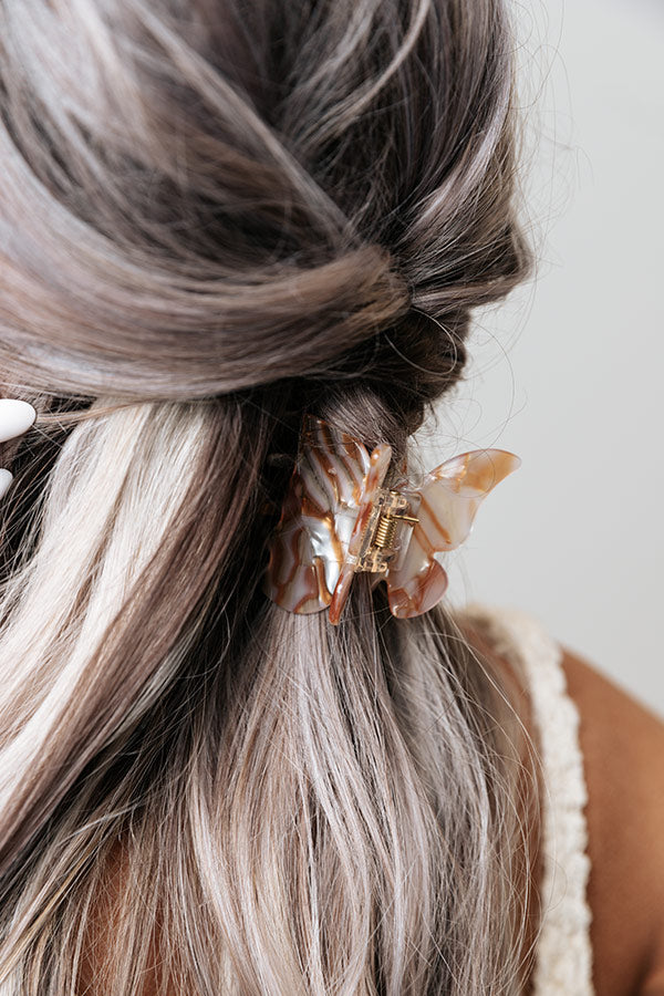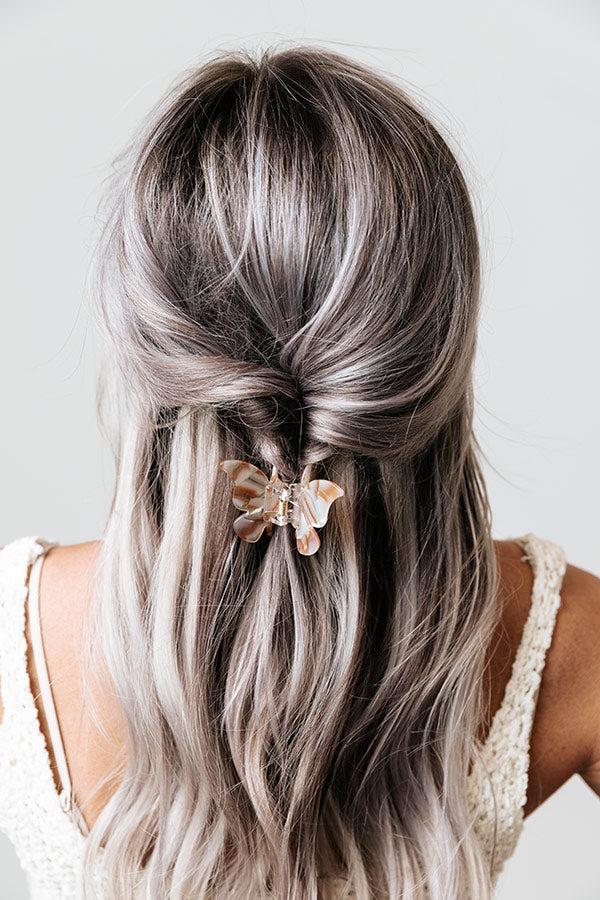 You won't find a better way to keep your hair up this summer than our adorable 'Oakrest' hair claw featuring a cream hued butterfly!