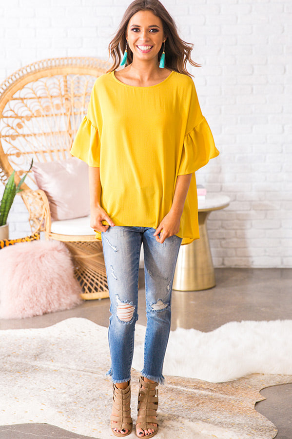 Sweep everyone off their feet in this versatile shift top! This sweet shift top features a scoop neckline, a high-low bottom hem & has a ruffled flounce sleeve that adds the perfect feminine touch. Throw on heels & transition your look from day to night in a matter of minutes!