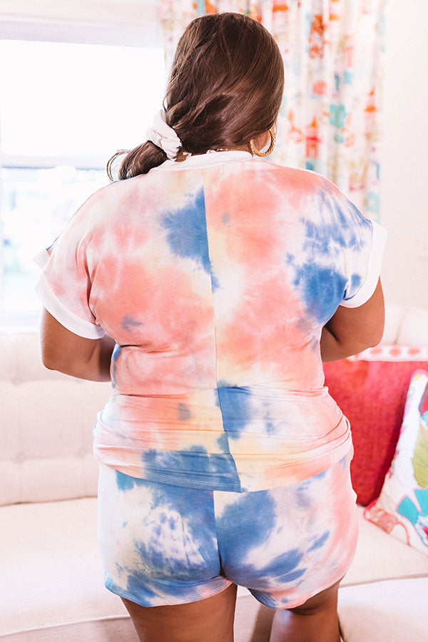 Plus Size - Your weekend or after work style will be on a roll when you wear this adorable white shift top featuring ultra soft lightweight material patterned with blue, pink, and yellow/orange hued tie dye, a v-cut neckline, short loose sleeves, accent trim, and a relaxed silhouette that falls into a rounded hemline! Measurements