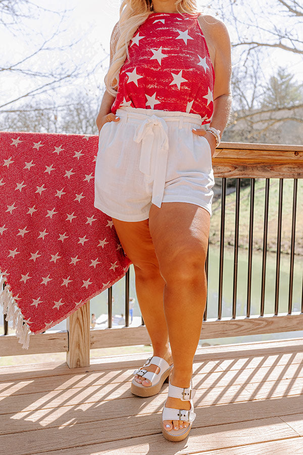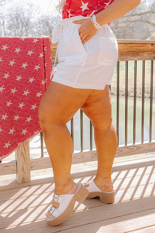 There is no better piece to wear while spending the day in the sun than our simple ivory colored plus size 'On The Boat' shorts featuring soft and lightweight linen-blend material, a high elastic waistline with a tie closure, two side pockets and two back pockets, and a relaxed silhouette that ends in straight upper-thigh length hemlines! on products