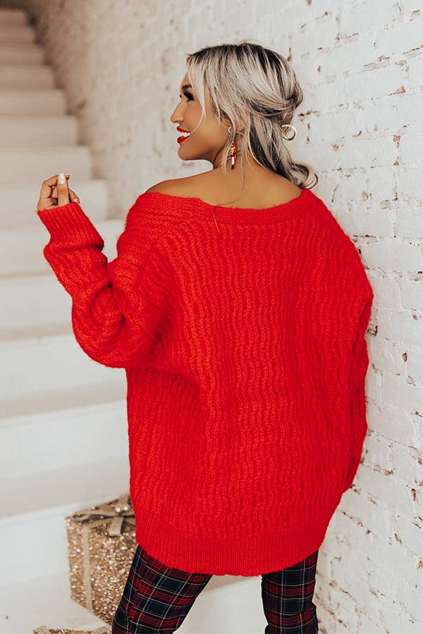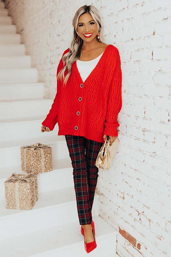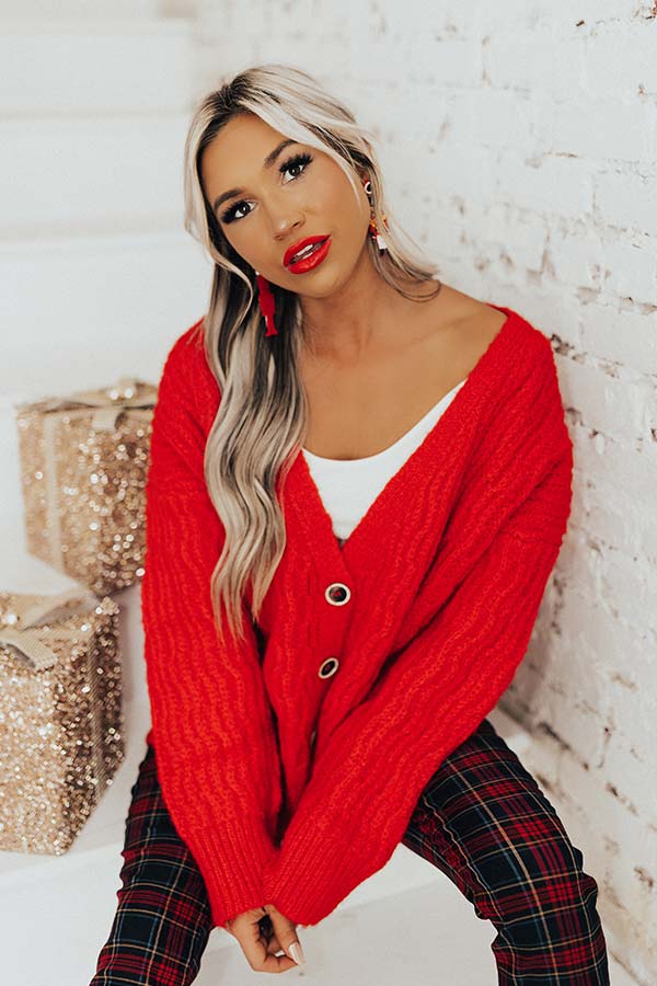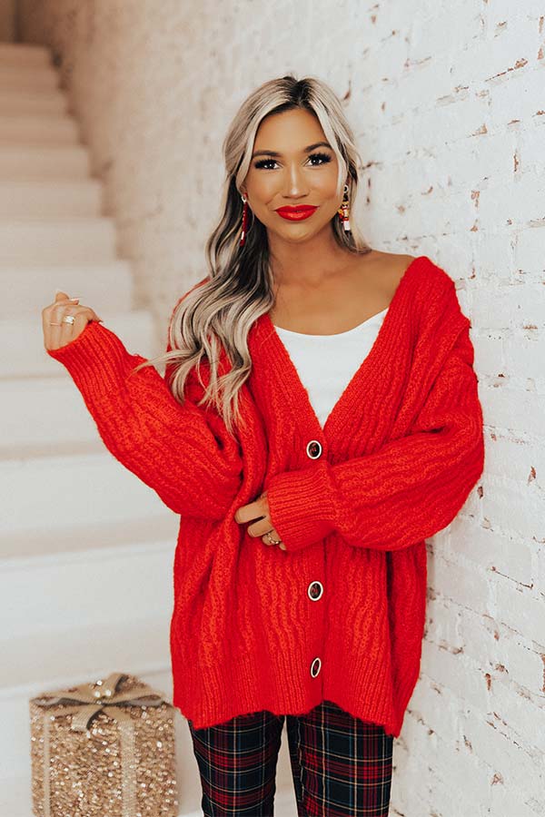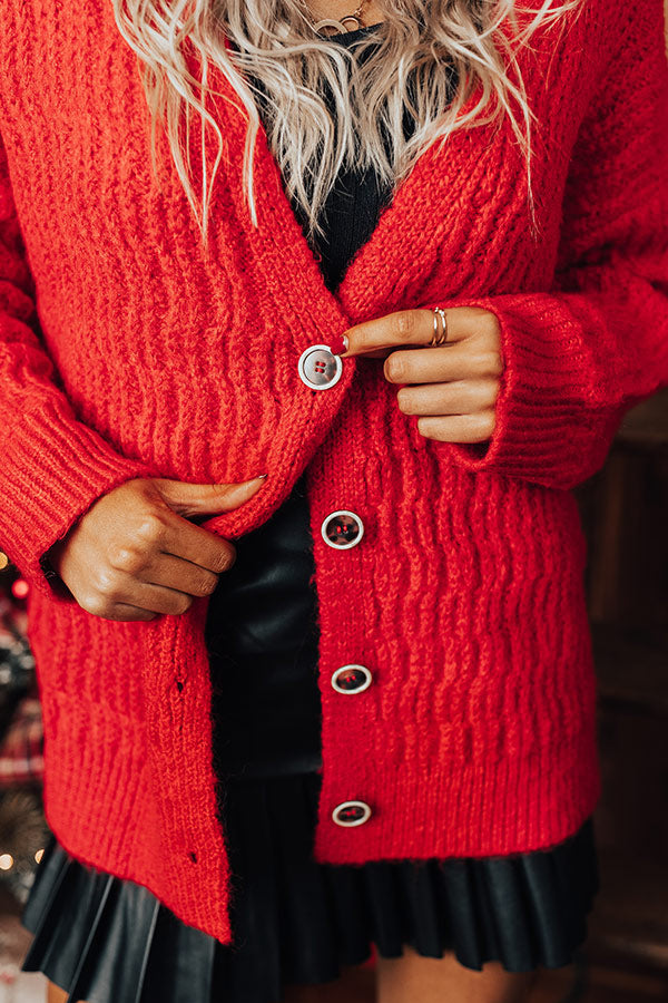 Drape yourself in warmth in our darling red 'On The Vine' cardigan featuring soft thick knit material, long loose sleeves, a button down front with a deep v-cut neckline, and a slouched silhouette that falls into a straight hemline!