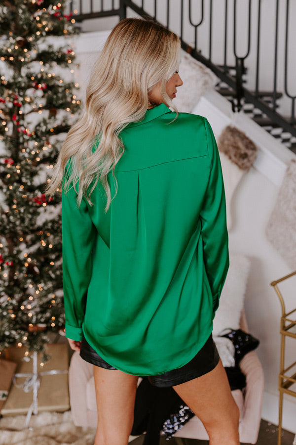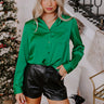 Make a vibrant statement in our cute kelly green 'Once In A Lifetime' top featuring lightweight and flowy satin material, a button down front with a collared neckline, long loose sleeves with button closure cuffs, a single faux accent chest pocket cut, and a relaxed silhouette that falls into a rounded hemline!