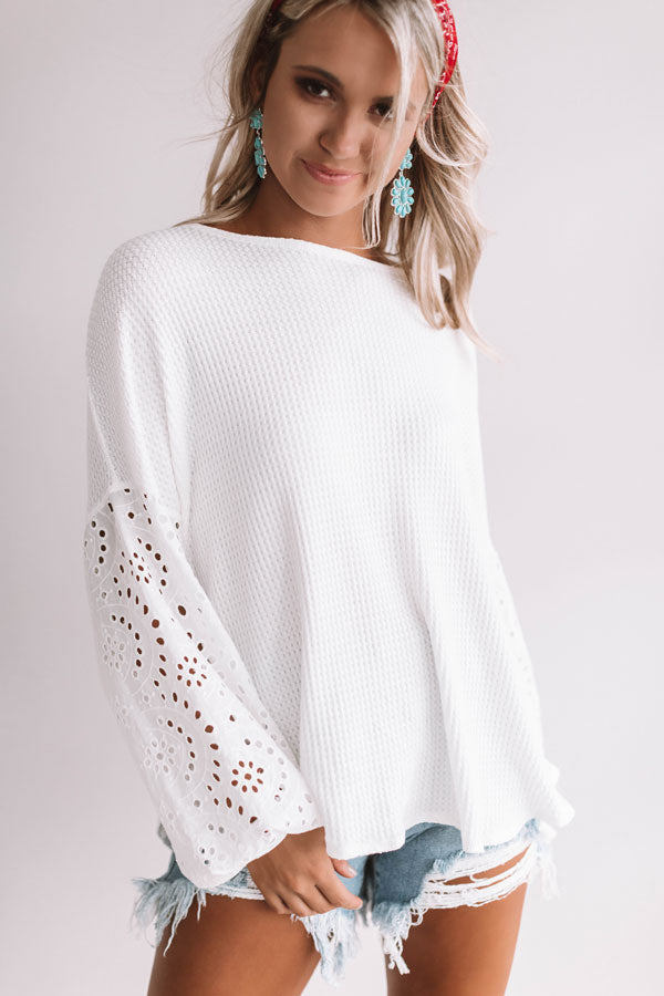 If I could have one wish... it would be to fill my closet with tops just like this! This "comfy cute" closet essential has a relaxed knit bodice, and crochet pierced sleeves that add the perfect touch of boho flair. Whether you style this shift top with shorts this summer, or jeans this fall, you will have this must-have top on repeat all season long!