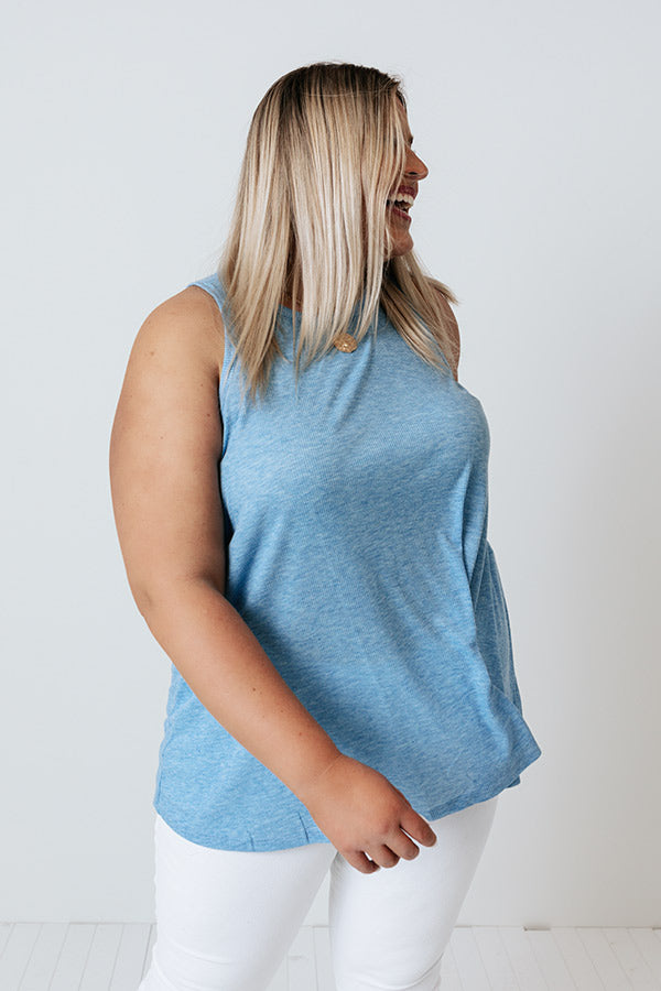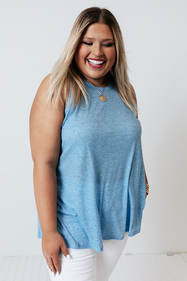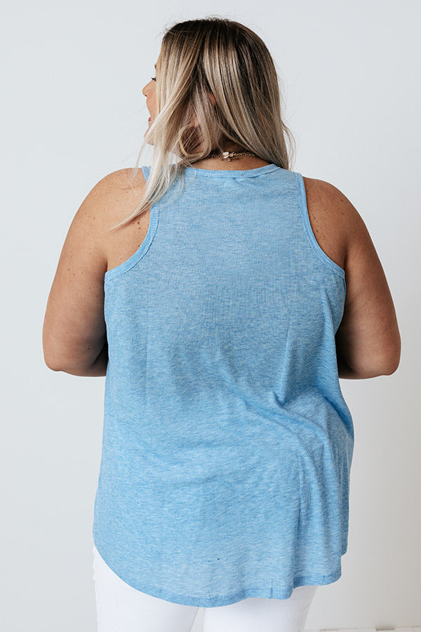 Plus Size - Hit the highway in style with this adorable sky blue shift tank featuring soft lightweight and flowy material, a rounded neckline, 1-inch shoulder straps with a racerback fit, and a relaxed silhouette that ends in a straight hemline!
