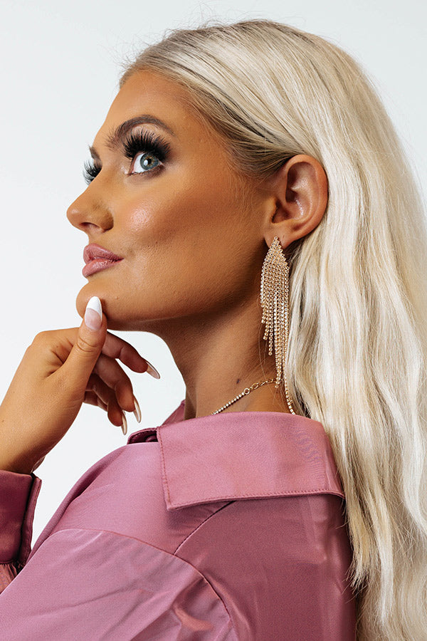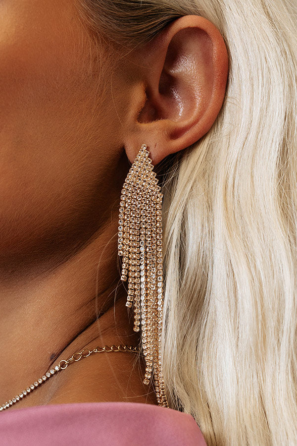 The perfect night out earrings, these gold stunners feature dangling rhinestone tassels!