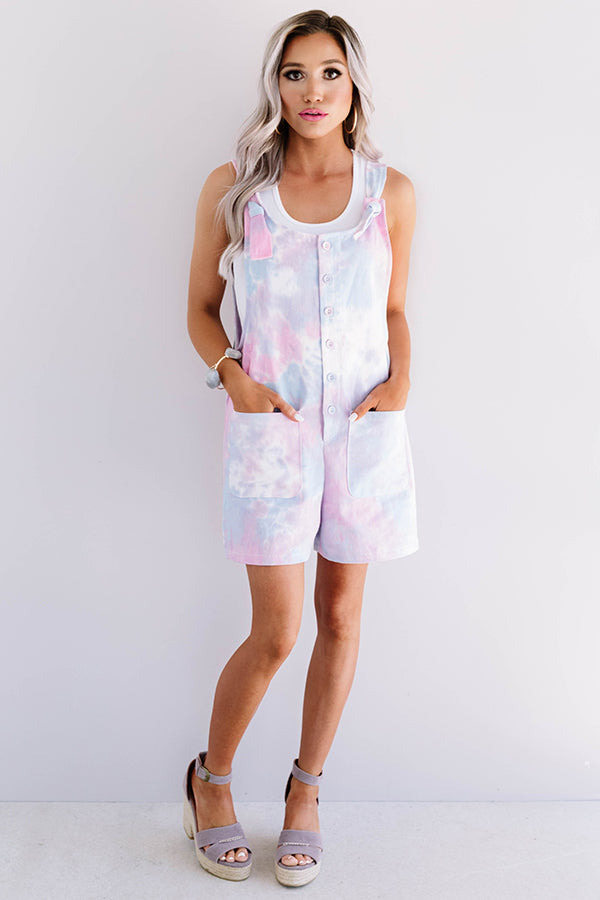 Live life colorfully in our trendy "Outer Banks" romper featuring lightweight material patterned with blue and pink/purple hued tie dye, a button up front with a scooped neckline and upper back, 1-inch tied shoulder straps with a front tie closure, front accent pockets, and a relaxed silhouette that falls into straight upper-thigh length hemlines! We have styled this cutie with a white seamless tank and some lavender block heels, but you can also wear it over a matching bralette with "The Bowen Wedge in Blue," our "Relaxing Poolside Sunnies in Purple," and our "Glam Expectations Faux Leather Tote in Pink!" Measurements