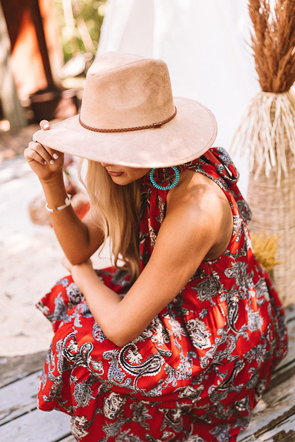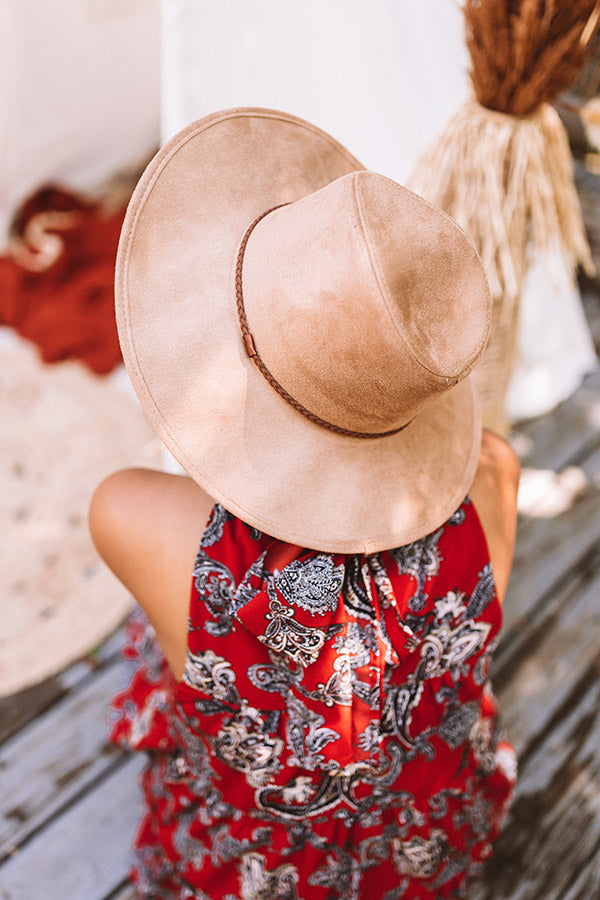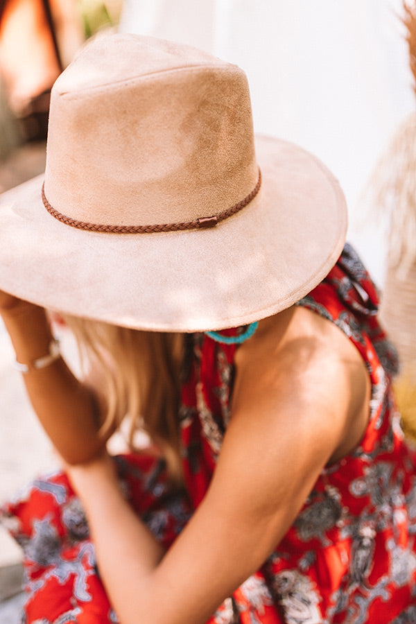 Your look will be total "outfit goals" when you top it off with this adorable tan hat featuring lightweight faux suede material, a wide brim, and a braided brown accent band!