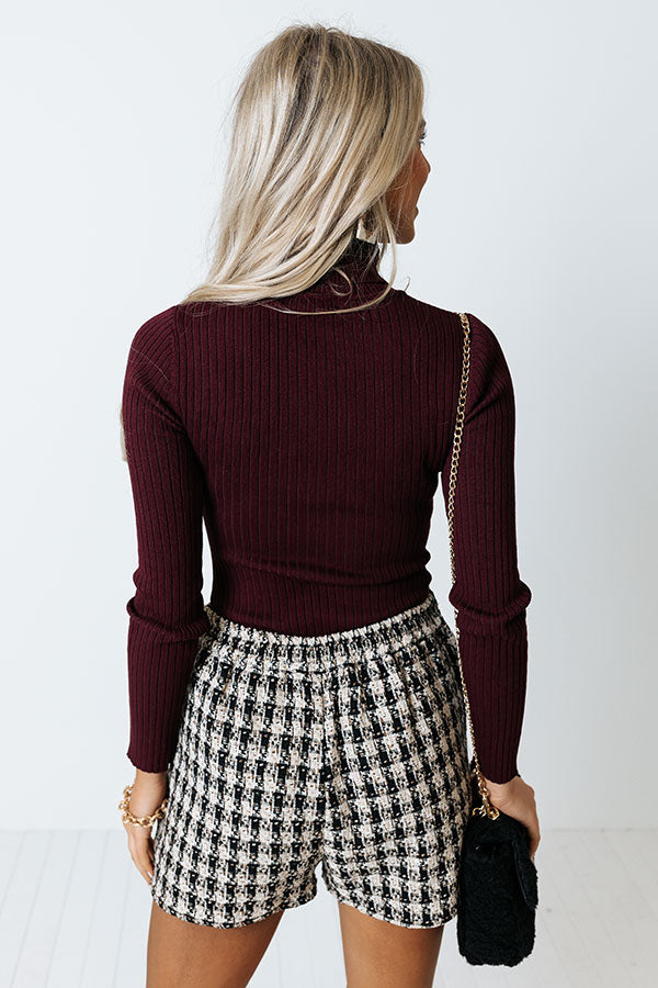 There is no such thing as an over the top look, especially when you're wearing something as classy as this chic maroon colored bodysuit featuring lightweight four-way stretch material with horizontal ribbed texturing, a turtle neckline, long sleeves, and a flattering form fitting silhouette that ends in cheeky fit bottoms with a snap closure!