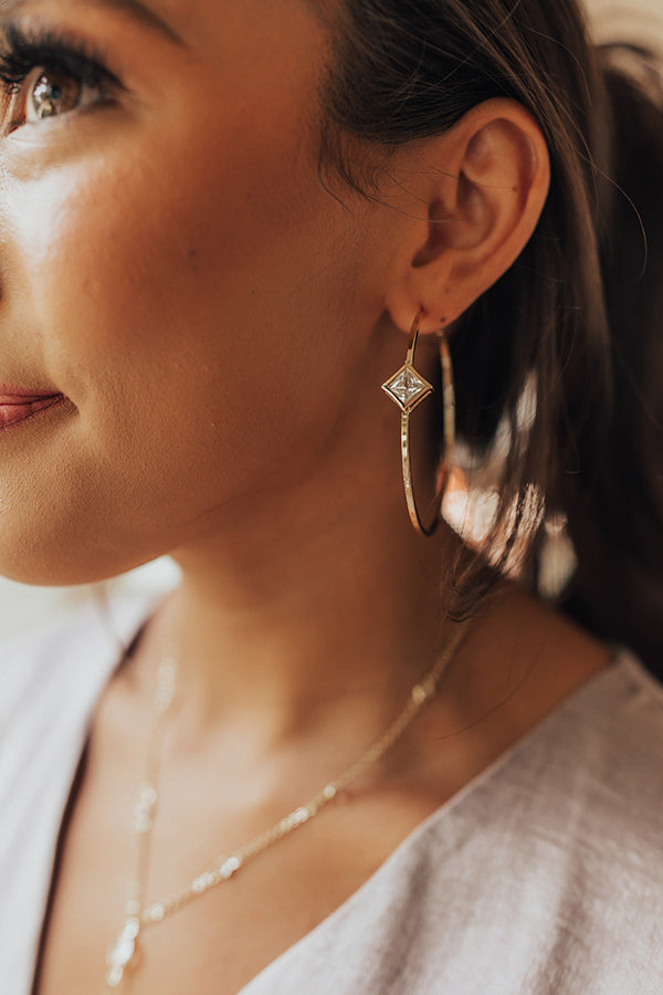 All eyes are sure to be on you when you accessorize with our stunning 'Overcome The Odds' earrings featuring large gold hoops with diamond shapes rhinestone accents on the front!
