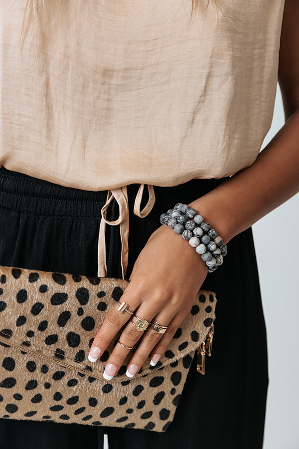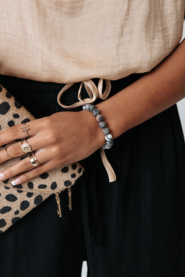 You arm candy will thank you for purchasing our adorable 'Overlooking Venice' bracelet featuring a stretchy band with grey and white hued beads!