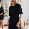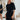 - Shimmering, black colored velvet material with a striped pattern of sequins