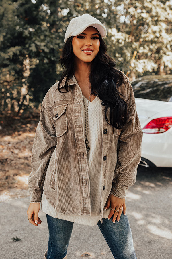 Own The World Corduroy Jacket In Warm Taupe