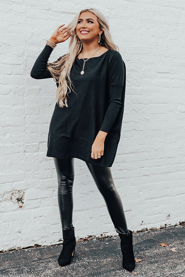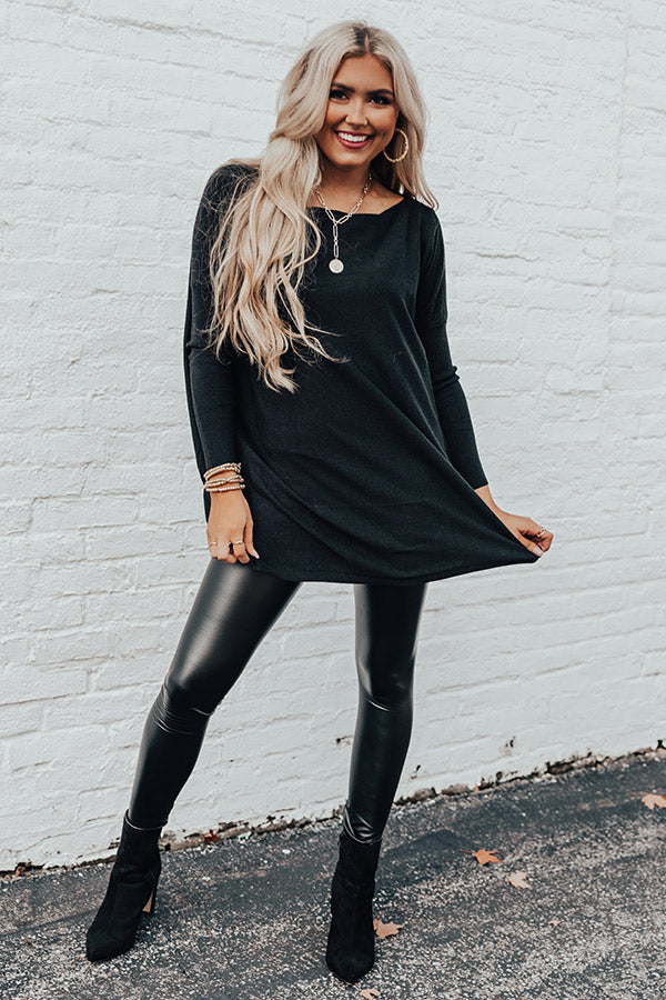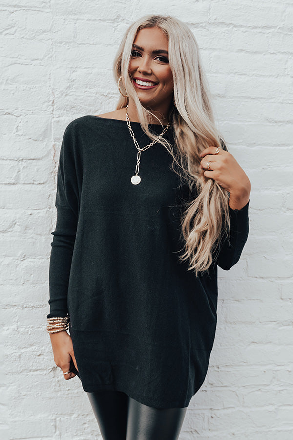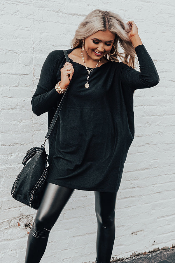 Take your fall wardrobe to new heights with our charming black 'Ozark Mountains Shift Top' featuring lightweight flowy material, long fitted sleeves, a high neckline, and an ultra draped silhouette that cascades into a straight tunic-length hemline! Measurements