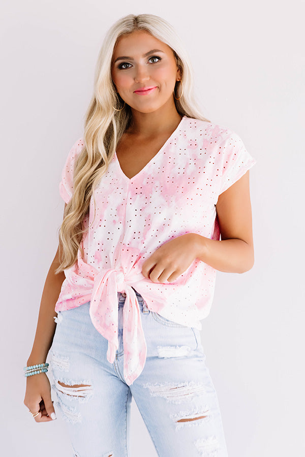 Pacific Coast Club Tie Dye Eyelet Top in Pink