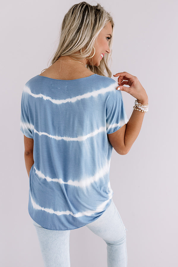 Keep your OOTD simple with our casual light blue "Pacific Coast Highway Shift Tee" featuring soft lightweight material patterned with horizontal white tie dye accent stripes, a v-cut neckline, short loose sleeves, and a relaxed silhouette that falls into a rounded hemline! We have styled this trendy piece with some distressed light wash skinnies and a neutral sneaker and faux leather backpack, but you can also wear it with some frayed white shorts, "The Avonlea Espadrille in Clear," and our "Relaxing Poolside Sunnies in Clear!" Measurements