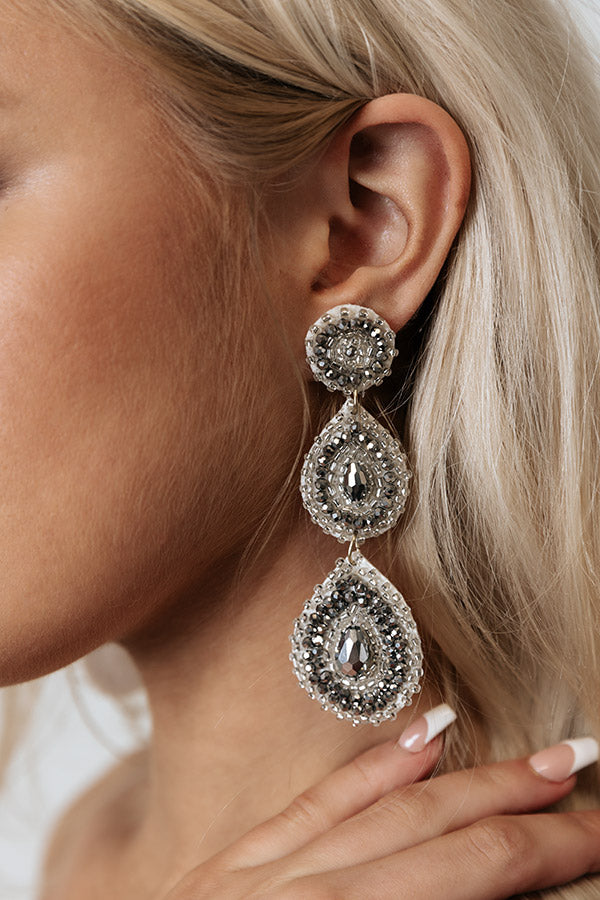 Accessorize luxuriously with our glamorous 'Painting Paris' statement earrings featuring a silver beaded circle stud and two dangling tiered silver beaded teardrop pieces!